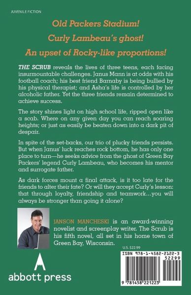 Old Packers Stadium! Curly Lambeau’s ghost! An upset of Rocky-like proportions! The Scrub reveals the lives of three teens, each facing insurmountable challenges. Janus Mann is at odds with his football coach; his best friend Barnaby is being bullied by his physical therapist; and Asha’s life is controlled by her alcoholic father. Yet the three friends remain determined to achieve success. The story shines light on high school life, ripped open like a scab. Where on any given day you can reach soaring heights; or just as easily be beaten down into a dark pit of despair. In spite of the set-backs, our trio of plucky friends persists. But when Janus’ luck reaches rock bottom, he has only one place to turn—he seeks advice from the ghost of Green Bay Packers’ legend Curly Lambeau, who becomes his mentor and surrogate father. As dark forces mount a final attack, is it too late for the friends to alter their fate? Or will they accept Curly’s lesson: that through loyalty, friendship and teamwork…you will always be stronger than going it alone?