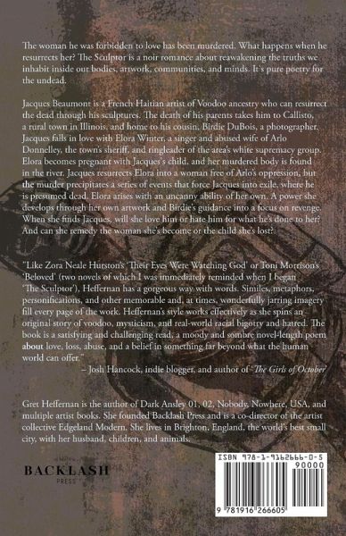 The woman he loves has been murdered. What happens when he resurrects her? Jacques Beaumont is a French Haitian artist of Voodoo ancestry with the ability to resurrect the dead through his sculptures. The death of his parents takes him to Callisto, a rural town in Illinois. Jacques falls in love with Elora Winter, a singer and abused wife of Arlo Donnelley, the town's sheriff and ring leader of the area's white supremacy group. Elora becomes pregnant with Jacques child and her murdered body is found in the river. Jacques resurrects Elora into a woman free of Arlo's oppression, but Elora arises with an unearthly ability of her own. When she finds Jacques, will she love him or hate him for what he's done to her? And, can she remedy the woman she's become or the child she's lost?
