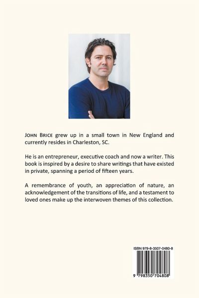 Serial entrepreneur and executive coach John Brice's first collection of poems takes readers on a journey of transcendent themes including the innocence of youth, the impact of impressions formed through relationships, and the transition to adulthood. This work will be appreciated by nature lovers as it is rich in imagery of the small town of New England he grew up in and also covers travels from around the world. Brice draws upon his own influences of writers like Seamus Heaney, Wendell Berry, Mary Oliver and David Whyte.