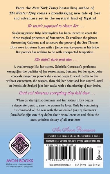 From the New York Times bestselling author of The Winter King comes a breathtaking new tale of love and adventure set in the mystical land of Mystral He wasn’t supposed to choose her . . . Seafaring prince Dilys Merimydion has been invited to court the three magical princesses of Summerlea. To eradicate the pirates threatening Calberna and to secure the power of the Sea Throne, Dilys vows to return home with a fierce warrior-queen as his bride. But politics has nothing to do with unexpected temptation. She didn’t dare wed him . . . A weathermage like her sisters, Gabriella Coruscate’s gentleness exemplifies the qualities of her season name, Summer. Yet her quiet poise conceals dangerous powers she cannot begin to wield. Better to live without excitement, she reasons, than risk her heart and lose control—until an irresistible Sealord jolts her awake with a thunderclap of raw desire. Until evil threatens everything they hold dear . . . When pirates kidnap Summer and her sisters, Dilys begins a desperate quest to save the woman he loves. Only by combining is command of the seas with the unleashed fury of Summer’s formidable gifts can they defeat their brutal enemies and claim the most priceless victory of all: true love.