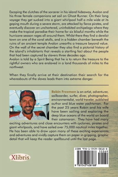 Escaping the clutches of the sorcerer in his island hideaway, Avalon and his three female companions set sail on Ghost Runner. On their long voyage they get sucked into a giant whirlpool half a mile wide at its gaping mouth during a severe storm, are attacked by fierce pirates, and eventually discover an unchartered, uninhabited archipelago where they make the tropical paradise their home for six blissful months while the hurricane season rages all around them. Whilst there they find a derelict town on one of the coral atolls and in a hidden chamber beneath the ruins of an ancient temple Avalon unearths a treasure beyond value. On the wall of the secret chamber they also find a pictorial history of the island's inhabitants that reveals a startling fact about the people that had been captured by slavers three decades ago. Avalon is told by a Spirit Being that he is to return the treasure to the rightful owners who are enslaved in a land thousands of miles to the northwest. When they finally arrive at their destination their search for the whereabouts of the slaves leads them into extreme danger.