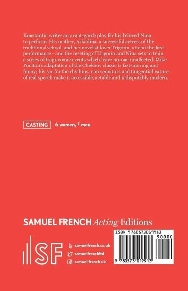 Konstantin writes an avant-garde play for his beloved Nina to perform. His mother, Arkadina, a successful actress of the traditional school, and her novelist lover Trigorin, attend the first performance - and the meeting of Trigorin and Nina sets in train a series of tragi-comic events which leave no-one unaffected. Mike Poulton's adaptation of the Chekhov classic is fast-moving and funny; his ear for the rhythms, non sequiturs and tangential nature of real speech make it accessible, actable and indisputably modern.-6 women, 7 men