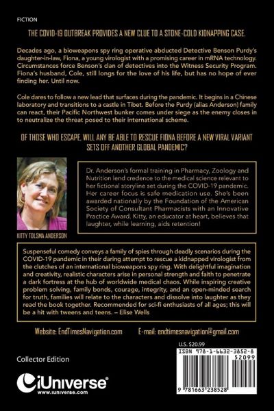 THE COVID-19 OUTBREAK PROVIDES A NEW CLUE TO A STONE-COLD KIDNAPPING CASE Decades ago, a SCIB bioweapons spy ring operative abducted Detective Benson Purdy's daughter-in-law, Fiona, a young virologist with a promising career in mRNA technology. Circumstances force Benson's clan of detectives into the Witness Security Program. Fiona's husband, Cole, still longs for the love of his life, but has no hope of ever finding her. Until now. Cole dares to follow a new lead that surfaces during the pandemic. It begins in a Chinese laboratory and transitions to a castle in Tibet. Before the Purdy (alias Anderson) family can react, their Pacific Northwest bunker comes under siege as the enemy closes in to neutralize the threat posed to their international scheme. OF THOSE WHO ESCAPE, WILL ANY BE ABLE TO RESCUE FIONA BEFORE A NEW VIRAL VARIANT SETS OFF ANOTHER GLOBAL PANDEMIC?