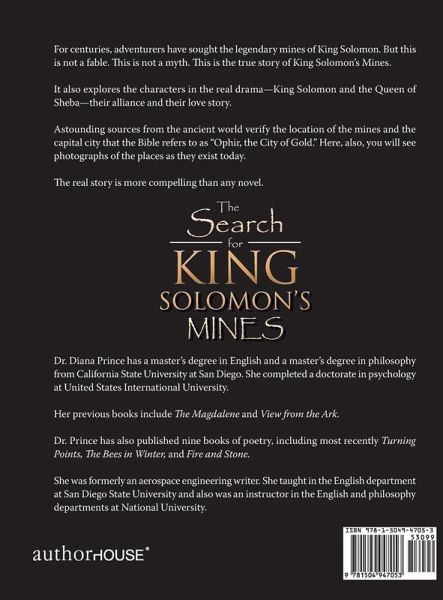 For centuries, adventurers have sought the legendary mines of King Solomon. But this is not a fable. This is not a myth. This is the true story of King Solomon's Mines. It also explores the characters in the real drama-King Solomon and the Queen of Sheba-their alliance and their love story. Astounding sources from the ancient world verify the location of the mines and the capital city that the Bible refers to as "Ophir, the City of Gold." Here, also, you will see photographs of the places as they exist today. The real story is more compelling than any novel.