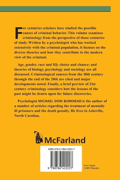 For centuries scholars have studied the possible causes of criminal behavior in the hopes of shedding light on one of society's most persistent problems. This volume examines criminology from the perspective of those centuries of study. Written by a psychologist who has worked extensively with the criminal population, it focuses on the diverse theories that have been offered and the ways in which they contribute to the modern view of the criminal. The correlates of crime such as age, gender, race and IQ are discussed along with more random factors such as choice and chance. Theories of biology, psychology and sociology are all discussed. Criminological sources from the 18th century through the end of the 20th are cited and major developments noted. Finally, a brief preview of 21st century criminology considers how the lessons of the past might be adapted and drawn upon for future discoveries.
