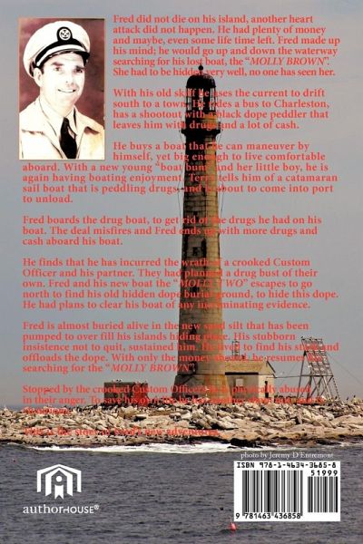 Fred did not die on his island, another heart attack did not happen. He had plenty of money and maybe, even some life time left. Fred made up his mind; he would go up and down the waterway searching for his lost boat, the "MOLLY BROWN". She had to be hidden very well, no one has seen her. With his old skiff he uses the current to drift south to a town. He rides a bus to Charleston, has a shootout with a black dope peddler that leaves him with drugs and a lot of cash. He buys a boat that he can maneuver by himself, yet big enough to live comfortable aboard. With a new young "boat bum" and her little boy, he is again having boating enjoyment. Terry tells him of a catamaran sail boat that is peddling drugs, and is about to come into port to unload. Fred boards the drug boat, to get rid of the drugs he had on his boat. The deal misfires and Fred ends up with more drugs and cash aboard his boat. He finds that he has incurred the wrath of a crooked Custom Officer and his partner. They had planned a drug bust of their own. Fred and his new boat the "MOLLY TWO" escapes to go north to find his old hidden dope burial ground, to hide this dope. He had plans to clear his boat of any incriminating evidence. Fred is almost buried alive in the new sand silt that has been pumped to over fill his islands hiding place. His stubborn insistence not to quit, sustained him. He lived to find his stash and offloads the dope. With only the money aboard, he resumes his searching for the "MOLLY BROWN". Stopped by the crooked Custom Officers he is physically abused in their anger. To save his own life he has another shoot out, and is victorious. This is the story of Fred's new adventures.