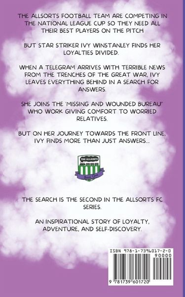 An inspirational story of loyalty, adventure, and self-discovery set against the backdrop of football on the Homefront during the Great War. The Search - The Allsorts FC Series Book 2 The Allsorts football team are competing in the National League Cup so they need all their best players on the pitch. But star striker Ivy Winstanley finds her loyalties divided. When a telegram arrives with terrible news from the trenches of the great war, Ivy leaves everything behind in a search for answers. She joins the 'Missing and Wounded Bureau'' who work giving comfort to worried relatives. On her journey towards the front line, Ivy finds more than just answers.... 'The Search' is the second in the Allsorts FC series. An inspirational story of loyalty, adventure, and self-discovery.