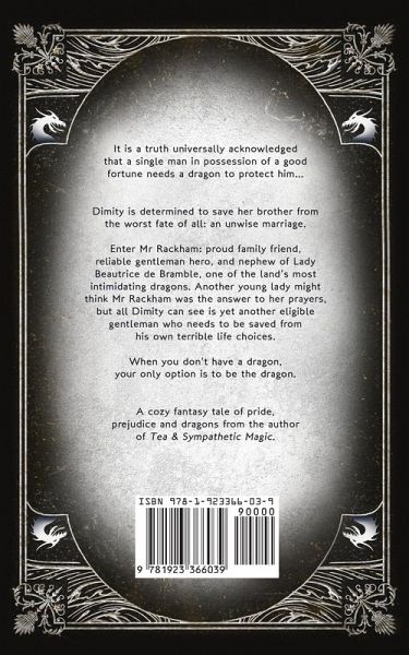 It is a truth universally acknowledged that a single man in possession of a good fortune needs a dragon to protect him. Dimity, Dido and Chambrey Iverwold no longer have a family dragon. Without their patron, they are alone in a world of invitations, assemblies and matchmaking. This season, with Chambrey finally in control of his fortune, the hungry fortune hunters are circling. Dimity is determined to save her brother from the worst fate of all: an unwise marriage. Enter Mr Rackham: proud family friend, reliable gentleman hero, and nephew of Lady Beautrice de Bramble, one of the land's most intimidating dragons. Another young lady might think Mr Rackham was the answer to her prayers, but all Dimity can see is yet another eligible gentleman who needs to be saved from his own terrible life choices. When you don't have a dragon, your only option is to BE the dragon. A cozy fantasy tale of pride, prejudice and dragons from the author of Tea & Sympathetic Magic.
