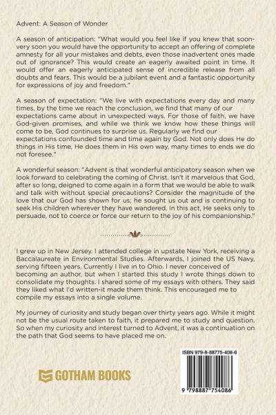 Advent: A Season of Wonder A season of anticipation: " What would you feel like if you knew that soon-very soon you would have the opportunity to accept an offering of complete amnesty for all your mistakes and debts, even those inadvertent ones made out of ignorance? This would create an eagerly awaited point in time. It would offer an eagerly anticipated sense of incredible release from all doubts and fears. This would be a jubilant event and a fantastic opportunity for expressions of joy and freedom." A season of expectation: "We live with expectations every day and many times, by the time we reach the conclusion, we find that many of our expectations came about in unexpected ways. For those of faith, we have God-given promises, and while we think we know how these things will come to be, God continues to suprise us. Regularly we find our expectations confounded time and time again by God. Not only does He do things in His time, He does them in His own way, many times to ends we do not foresee." A wonderful season: "Advent is that wonderful anticipatory season when we look forward to celebrating the coming of Christ. Isn't it marvelous that God, after so long, deigned to come again in a form that we would be able to walk and talk with without special precautions? Consider the magnitude of the love that our God has shown for us; he sought us out and is continuing to seek His children wherever they have wandered. In this act, he seeks only to persuade, not to coerce or force our return to the joy of his companionship."