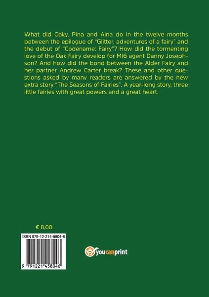 What did Oaky, Pina and Alna do in the twelve months between the epilogue of "Glitter, adventures of a fairy" and the debut of "Codename: Fairy"? How did the tormenting love of the Oak Fairy develop for MI6 agent Danny Josephson? And how did the bond between the Alder Fairy and her partner Andrew Carter break? These and other questions asked by many readers are answered by the new extra story "The Seasons of Fairies". A year-long story, three little fairies with great powers and a great heart.