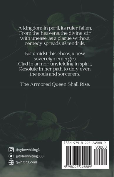 A kingdom in peril, its ruler fallen. From the heavens, the divine stir with unease, as a plague without remedy spreads its tendrils. But amidst this chaos, a new sovereign emerges: Clad in armor, unyielding in spirit, Resolute in her path to defy even the gods and sorcerers. The Armored Queen Shall Rise. Approximately 500 pages.