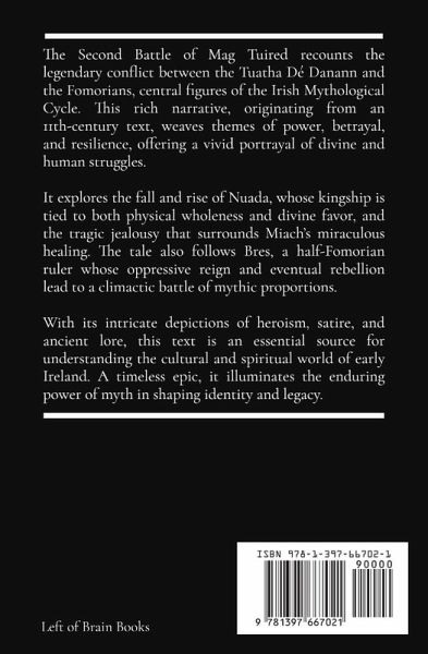 The Second Battle of Mag Tuired recounts the legendary conflict between the Tuatha Dé Danann and the Fomorians, central figures of the Irish Mythological Cycle. This rich narrative, originating from an 11th-century text, weaves themes of power, betrayal, and resilience, offering a vivid portrayal of divine and human struggles. It explores the fall and rise of Nuada, whose kingship is tied to both physical wholeness and divine favor, and the tragic jealousy that surrounds Miach's miraculous healing. The tale also follows Bres, a half-Fomorian ruler whose oppressive reign and eventual rebellion lead to a climactic battle of mythic proportions. With its intricate depictions of heroism, satire, and ancient lore, this text is an essential source for understanding the cultural and spiritual world of early Ireland. A timeless epic, it illuminates the enduring power of myth in shaping identity and legacy.