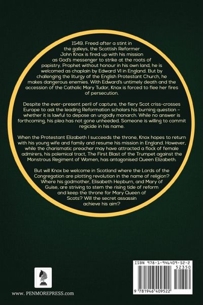 1549. Freed from the galleys, the Scottish Reformer John Knox continues his mission as God's messenger to strike at the roots of papistry. A prophet without honor in his own land, he is welcomed as a chaplain by Edward VI in England. But by challenging the liturgy of the English Protestant Church, he makes dangerous enemies, and with Edward's untimely death and the accession of the Catholic Mary Tudor, Knox is forced to flee persecution. Despite the ever-present peril of capture, Knox crisscrosses Europe to ask the leading Reformation scholars his burning question - whether it is lawful to depose an ungodly monarch. While no answer is forthcoming, his plea has not gone unheeded. Someone is willing to commit regicide in his name. When Protestant Elizabeth I succeeds to the throne, Knox hopes to return with his young wife and family and resume his mission in England. However, while the charismatic preacher may have attracted a flock of female admirers, his polemical tract, The First Blast of the Trumpet against the Monstrous Regiment of Women, has antagonized Queen Elizabeth. Will Knox find a welcome in Scotland where the Lords of the Congregation are plotting revolution in the name of religion? Where his godmother, Elisabeth Hepburn, and Mary of Guise, are striving to stem the rising tide of reform and keep the throne for Mary Queen of Scots? And will the secret assassin achieve his aim?