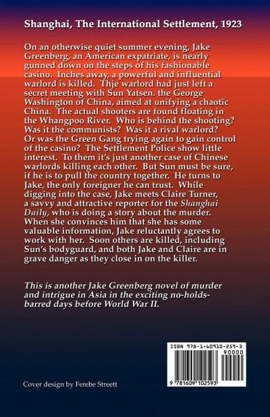 Shanghai, 1923. Jake Greenberg, an American expatriate, is nearly gunned down on the steps of his fashionable casino. Inches away, a powerful warlord is killed. The police show little interest. Looking into the murder, Jake meets Claire Turner, a savvy and attractive newspaper reporter. They agree to work together. But soon others are killed, including a close friend, and both Jake and Claire are in grave danger as they home in on the killer.