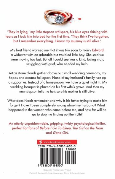 'They're lying,' my little stepson whispers, his blue eyes shining with tears as I tuck him into bed for the first time. 'They think I've forgotten, but I remember everything. I know my mummy is still alive.' My best friend warned me that it was too soon to marry Edward, a widower with an adorable but troubled little boy. She said we were moving too fast. But all I could see was a kind, loving man, struggling with grief, who needed my help. Yet as storm clouds gather above our small wedding ceremony, my hopes and dreams fall apart. None of my husband's family turn up to support us. Instead of a honeymoon, we have a quiet night in. My wedding bouquet is placed on his first wife's grave. And then my new stepson tells me he's sure his mother is still alive. What does Noah remember and why is his father trying to make him forget? Have I been completely wrong about my husband? What happened to the woman who came before me, and how far will he go to stop me finding out the truth? An utterly unputdownable, gripping, twisty psychological thriller, perfect for fans of Before I Go To Sleep, The Girl on the Train and Gone Girl. What everyone is saying about The Second Marriage: 'Sweet JESUS what a story. Holy smokes I was NOT prepared. This was incredibly great.' Read with K8, ¿¿¿¿¿ 'WOW! Just WOW! Gobsmacked by the twist!! really, really, really good. I raced through this brilliant, twist filled book. It was completely engrossing, impossible to put down and the twist floored me...The plot was brilliant and consistent throughout, it's an unputdownable psychological thrill ride.' Goodreads reviewer, ¿¿¿¿¿ 'Wow this is another unputdownable book which once it had its claws in me I couldn't stop reading. This is such a twisted story... I loved it!' Book Lovers Anon UK, ¿¿¿¿¿ 'A gripping domestic thriller that you won't be able to put down... an unputdownable domestic thriller with a twist that you'll never see coming... Once I started this book, I could not put it down... I was blown away by the ending of this book... 5 explosive stars' Layton Book Reviews, ¿¿¿¿¿