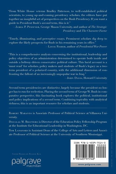 "This is a comprehensive analysis concerning the institutional, leadership and policy objectives of an administration determined to operate both inside and outside a beltway-driven conservative political culture. This lucid account is a 'must read' for scholars, policy makers and students of Bush's legacy as a two-term president of a polarized country, with the additional dimension of confronting the fallout of an increasingly unpopular war in Iraq." - John Davis, Howard University"This collection of scholarship is timely and much-needed. It is a well-written, well-researched, and worthwhile addition to the scholarly literature on the presidency in general and on George W. Bush in particular. I believe this text is well-suited to advanced undergraduates as well as graduate students." - Denise von Herrmann, University of Southern Mississippi