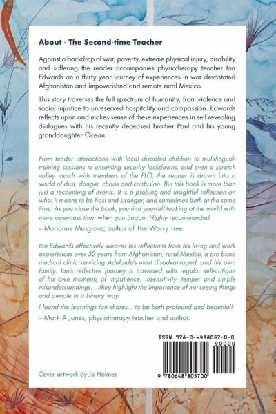 Against a backdrop of war, poverty, extreme physical injury, disability and suffering the reader accompanies physiotherapy teacher Ian Edwards on a thirty year journey of experiences in war devastated Afghanistan and impoverished and remote rural Mexico. This story traverses the full spectrum of humanity, from violence and social injustice to unreserved hospitality and compassion. Edwards reflects upon and makes sense of these experiences in self revealing dialogues with his recently deceased brother Paul and his young granddaughter Ocean.