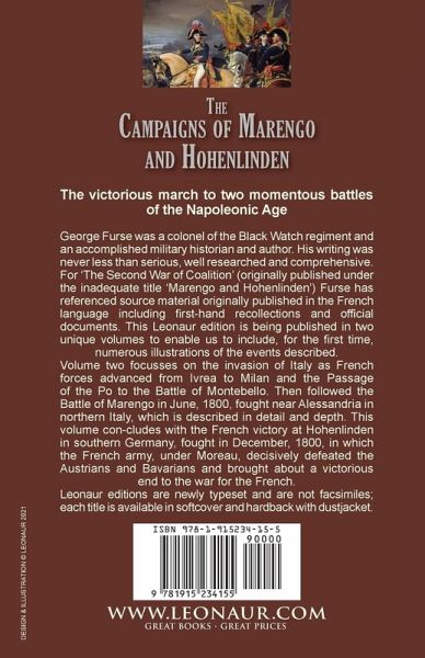 The victorious march to two momentous battles of the Napoleonic Age George Furse was a colonel of the Black Watch regiment and an accomplished military historian and author. His writing was never less than serious, well researched and comprehensive. For 'The Second War of Coalition' (originally published under the inadequate title 'Marengo and Hohenlinden') Furse has referenced source material originally published in the French language including first-hand recollections and official documents. This Leonaur edition is being published in two unique volumes to enable us to include, for the first time, numerous illustrations of the events described. Volume two focusses on the invasion of Italy as French forces advanced from Ivrea to Milan and the Passage of the Po to the Battle of Montebello. Then followed the Battle of Marengo in June, 1800, fought near Alessandria in northern Italy, which is described in detail and depth. This volume concludes with the French victory at Hohenlinden in southern Germany, fought in December, 1800, in which the French army, under Moreau, decisively defeated the Austrians and Bavarians and brought about a victorious end to the war for the French. Leonaur editions are newly typeset and are not facsimiles; each title is available in softcover and hardback with dustjacket.