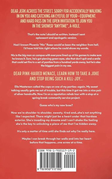 Dear Jerk Across the Street, sorry for accidentally walking in on you and catching an eyeful of your-equipment. And hard pass on the open invitation to join you in the shower "anytime", A-hole. That's the note I should've written. Instead I sent a pleasant and apologetic version. Had I known Phoenix "Nix" Russo would've been the neighbor from hell, I'd have told him right where he could shove my words. Nix is the big man on campus with everyone lined up at his games to make sure he knows it. Sure, he's got piercing blue eyes, abs that don't quit and a smile that could set fire to a set of panties from a hundred yards away, but he's also the biggest pain in my ass. Dear Pink-Haired Menace, learn how to take a joke and stop being such a kill-joy... Elle Masterson called the cops on one of my parties-again. My sweet talking usually gets me out of trouble, but this time it got me into a nice pair of silver handcuffs. Now I'm on a reputation rehab tour with a stop at a spring break community service project. Guess who's my new boss? Now we're shoulder to shoulder, sweaty, tired and...she's not anything like I expected. There might just be a heart under that hardass exterior. She's invading my dreams and I can't shake the feeling she's the key to unlocking a piece of me that I've hidden away. It's only a matter of time until she finds out why I'm really here. Maybe I can break through her walls and into her heart before that happens...one screw at a time. ***The Second We Met is a standalone new adult romance***