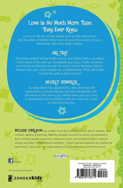 Bestselling author Melody Carlson (Gone Too Soon, Diary of a Teenage Girl) finishes her Girls of Harbor View series, which explores the ups and downs of a group of friends who are determined not to let their life in a rundown trailer park define them. In fact, these diverse and talented girls are determined to overcome any challenge they face. In this two-book bind-up containing Ski Trip and Secret Admirer, love is in the air, on the slopes and on the dance floor. Morgan, Amy, Carlie, and Emily--the Girls of Harbor View--are forced to navigate first crushes, growing up, and how to relate to each other as their relationships start to change. In Ski Trip, their hard-earned school trip takes a downturn when Amy and her friend Chelsea go completely boy crazy. Carlie would rather snowboard. But when she takes out her frustrations with her friends on the slopes, she ends up putting herself in a lot of danger. And in Secret Admirer, Amy finds herself pursued by a secret admirer. As the notes pile up, and the Valentine's Day dance approaches, Amy is wrapped up in dreams of love--but she may have her heart on the wrong guy. Secret Admirer: centers on girls from a variety of multicultural backgrounds and experiences realistically explores situations and experiences girls eight to twelve face every day with heart and humor--including shifting friendships, first heartbreaks, and growing awareness of the world around us is part of the Faithgirlz line of books