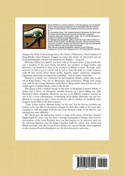 Diaries of Hemiunu, Architect of the Great Pyramid, reveal his privileged, yet dangerous, life as royal architect to Khufu. Diaries answer age-old questions about the design and building of the pyramids, but also about royal-family 'goings-on,' succession rivalries and murder in the harem...