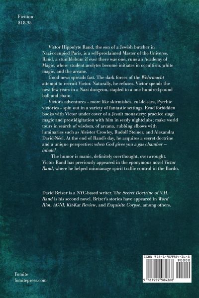 "Victor Hippolyte Rand, the son of a Jewish butcher in Nazi-occupied Paris, is a self-proclaimed Master of the Universe. Rand, a stumblebum if ever there was one, runs an Academy of Magic, where student acolytes become initiates in occultism, white magic, and the arcane. Good news spreads fast. The dark forces of the Wehrmacht attempt to recruit Victor. Naturally, he refuses. Victor spends the next few years in a Nazi dungeon, stapled to a one hundred-pound ball and chain. Victor's adventures -- more like skirmishes, cul-de-sacs, Pyrrhic victories -- spin out in a variety of fantastic settings. Read forbidden books with Victor under cover of a Jesuit monastery; practice stage magic and prestidigitation with him in seedy nightclubs; make world tours in search of wisdom, of arcana, rubbing elbows with luminaries such as Aleister Crowley, Rudolf Steiner, and Alexandra David-Nâeel. At the end of Rand's day, he acquires a secret doctrine and a unique perspective: when God gives you a gas chamber - inhale! The humor is manic, definitely overthought, overwrought. Victor Rand has previously appeared in the eponymous novel Victor Rand, where he helped mismanage spirit traffic control in the Bardo"--