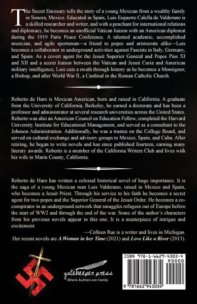 The Secret Emissary tells the story of a young Mexican from a wealthy family in Sonora, Mexico. Educated in Spain, Luis Esquerre Calella de Valderano is a skilled researcher and writer, and with a penchant for international relations and diplomacy, he becomes an unofficial Vatican liaison with an American diplomat during the 1919 Paris Peace Conference. A talented academic, accomplished musician, and agile sportsman-a friend to popes and aristocrats alike-Luis becomes a collaborator in underground activities against Fascists in Italy, Germany, and Spain. As a covert agent for the Jesuit Superior General and Popes Pius XI and XII and a secret liaison between the Vatican and Jesuit Curia and American military intelligence, Luis cuts a swath through history as he becomes a Monsignor, a Bishop, and after World War II, a Cardinal in the Roman Catholic Church.