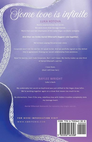 Some love is infinite LUKA KOTOVA Barely anyone knows our secret. We were more than teenage friends. More than just two employees of the same Vegas acrobatic company. And then we broke Aerial Ethereal's biggest rule together. We've been paying the price ever since. Corporate won't let me see her. Or speak to her. And we painfully signed on the dotted line in agreement. Erasing our secret relationship from existence. Now I'm twenty, and I hate Corporate. But I can't leave. My family makes up one-third of Aerial Ethereal's cast list. I love them. (And I still love her.) BAYLEE WRIGHT Luka is back. My undeniably hot secret ex-boyfriend was just shifted to the Vegas show Infini. We're working together again on a show that means too much to me. No distractions. Even if the sexy, rebellious boy with hidden troubles completely stole my teenage heart. Aerial Ethereal demands he remains my tragic secret.