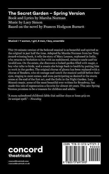 The long-awaited new 70-minute version of the beloved musical is as beautiful and spirited as the original in just half the time. Adapted by Marsha Norman from her Tony award winning book, it tells the story of Mary Lennox, orphaned in India, who returns to Yorkshire to live with an embittered, reclusive uncle and his invalid son. On the estate, she discovers a locked garden filled with magic, a boy who talks to birds, and a cousin she brings back to health by putting him to work in the garden.