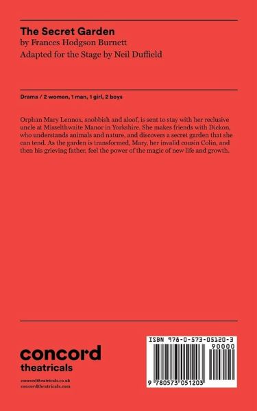 Orphan Mary Lennox, snobbish and aloof, is sent to stay with her reclusive uncle at Misselthwaite Manor in Yorkshire. She makes friends with Dickon, who understands animals and nature, and discovers a secret garden that she can tend. As the garden is transformed, Mary, her invalid cousin Colin, and then his grieving father, feel the power of the magic of new life and growth.-2 women, 1 man, 1 girl, 2 boys