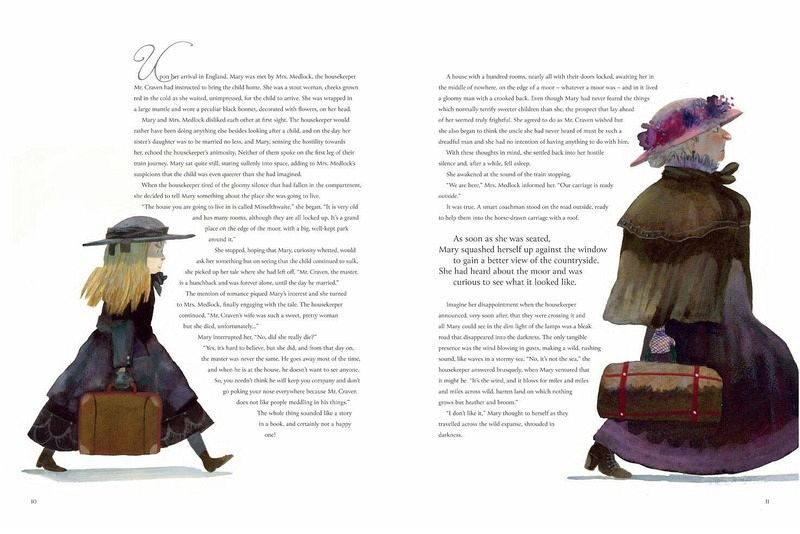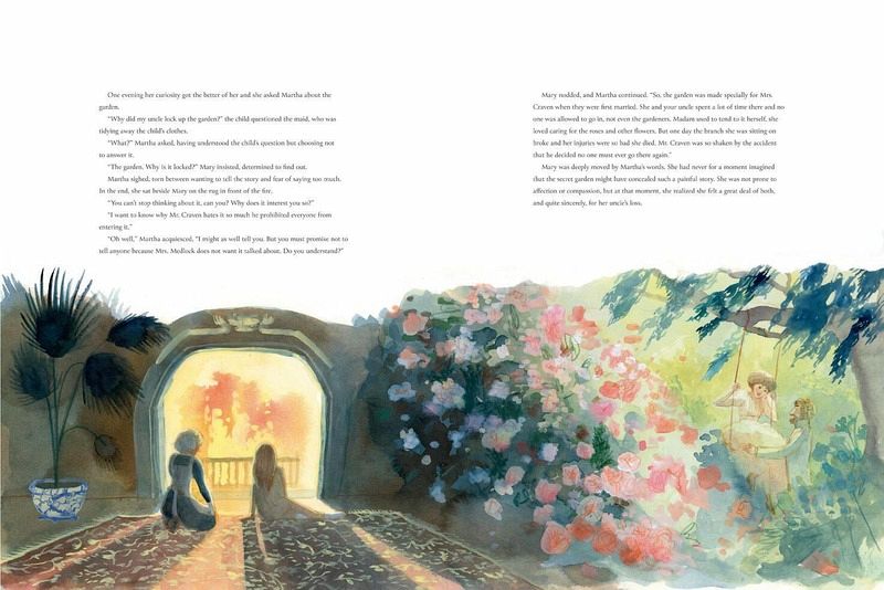 An abridged and elegantly illustrated edition of Frances Hodgson Burnett’s masterpiece. A secret garden with a tragic past, an imposing estate in the English countryside, a human-like robin, a bedridden boy named Colin, and a girl named Mary who finds herself growing up in a mysterious and fascinating environment, facing the difficulties of making new friendships. These are the main ingredients that make The Secret Garden so unique. The adventures of young Mary, a source of inspiration for generations of readers of all ages, are embellished in this volume by the illustrations of Mariachiara Di Giorgio. With her elegant, almost pictorial hand, Di Giorgio portrays the enchantment of discovering a forgotten garden and bringing it back to life.