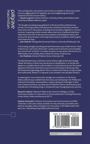 'The thought-provoking essays gathered in The Secret History of Democracy provide convincing evidence that democratic mechanisms have been invented many times and in many places, including times and places neglected in common accounts. This collection is a sobering reminder that democratic practices have often been succeeded by something else. But one also takes away a sense of the dynamic character of democratic history and the endless diversity of practices with some reasonable claim to embody democratic principles. As growing numbers wonder about what sorts of political institutions make sense in the face of the enormous problems confronting the twenty-first century, this demonstration of the long human history of political creativity gives some reason for hope.' -John Markoff, Professor, University of Pittsburgh, USA
