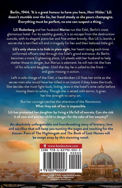 Berlin, 1944. 'It is a great honour to have you here, Herr Hitler.' Lili doesn't stumble over the lie, her hand steady as she pours champagne. Everything must be perfect, no one can suspect a thing... Lili Rodenberg and her husband Marius run the Edel, Berlin's most glamorous hotel. For its wealthy guests, it is an escape from the destruction outside, with its elegant piano bar and fine amber brandy. But Lili is Jewish, a secret she is terrified will end in tragedy for her and their beloved little girl. Lili's only choice is to hide in plain sight, her heart racing each time uniformed officers step through the Edel's grand entrance. As Berlin becomes a more frightening place, Lili pleads with her husband to help shelter those in danger but Marius is adamant: he will not risk the lives of his wife and daughter. Until the day he is called to the front - and goes missing in action. Left in sole charge of the Edel, a heartbroken Lily fixes her smile as she serves men who would have her killed in an instant if they knew the truth. She decides she must fight back, hiding Jews in the hotel's wine cellar before moving them to safety. Though she is seized with terror, it gives her the strength to carry on. But her courage catches the attention of the Resistance. What they ask of her is impossible. Lili has protected her daughter by living a life full of secrets. Can she risk it all now and put her child in danger for the sake of her country? An absolutely unforgettable and heartbreaking story of bravery, love and sacrifice that will keep you turning the pages and reaching for the tissues. Fans of The Nightingale and The Book of Lost Names will be swept away by this stunning novel. Readers love Catherine Hokin: 'Phenomenal... Literally broke my heart... Unputdownable... I was drawn into the story at the flip of the first page and I went through an entire box of Kleenex by the time I arrived at the last page. This masterpiece of a story is one that I highly recommend.' Page Turners, ⭐⭐⭐⭐⭐ 'Simply extraordinary!... I was hooked before reaching the bottom of the first page until I finished the last with a satisfied sigh... It was a privilege to read it... One of the best books I've read.' Goodreads reviewer, ⭐⭐⭐⭐⭐ 'So gripping... so shockingly absorbing I couldn't put it down... Omg what a rollercoaster of a ride... Fantastic.' Netgalley reviewer, ⭐⭐⭐⭐⭐ 'Heartbreaking... An eye-opener... This page-turner World War 2 novel pulls you in and won't let you go... Such a gripping and unputdownable book... One of the best WW2 historical fiction books I have read.' Short Book Thyme, ⭐⭐⭐⭐⭐ 'Amazing... I was totally absorbed in the story... 10 stars. One of my best reads this year. I can't begin to say how much I loved this book, I couldn't put it down, absolutely brilliant.' Goodreads reviewer, ⭐⭐⭐⭐⭐