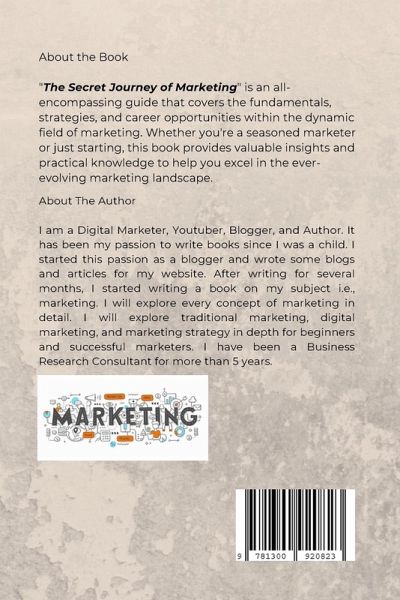 "The Secret Journey of Marketing" is an all-encompassing guide that covers the fundamentals, strategies, and career opportunities within the dynamic field of marketing. Whether you're a seasoned marketer or just starting, this book provides valuable insights and practical knowledge to help you excel in the ever-evolving marketing landscape. The book begins with an Introduction to Marketing, offering a comprehensive overview of the discipline. It explores the core principles of marketing and their application across various industries. By understanding the fundamentals, readers can build a…mehr