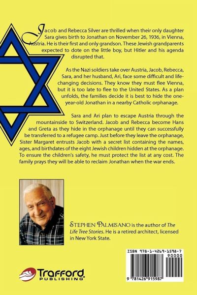 Jacob and Rebecca Silver are thrilled when their only daughter Sara gives birth to Jonathan on November 26, 1936, in Vienna, Austria. He is their first and only grandson. These Jewish grandparents expected to dote on the little boy, but Hitler and his agenda disrupted that. As the Nazi soldiers take over Austria, Jacob, Rebecca, Sara, and her husband, Ari, face some difficult and life-changing decisions. They know they must flee Vienna, but it is too late to flee to the United States. As a plan unfolds, the families decide it is best to hide the one-year-old Jonathan in a nearby Catholic orphanage. Sara and Ari plan to escape Austria through the mountainside to Switzerland. Jacob and Rebecca become Hans and Greta as they hide in the orphanage until they can successfully be transferred to a refugee camp. Just before they leave the orphanage, Sister Lucille entrusts Jacob with a secret list containing the names, ages, and birthdates of the eight Jewish children hidden at the orphanage. To ensure the children's safety, he must protect the list at any cost. The family prays they will be able to reclaim Jonathan when the war ends.