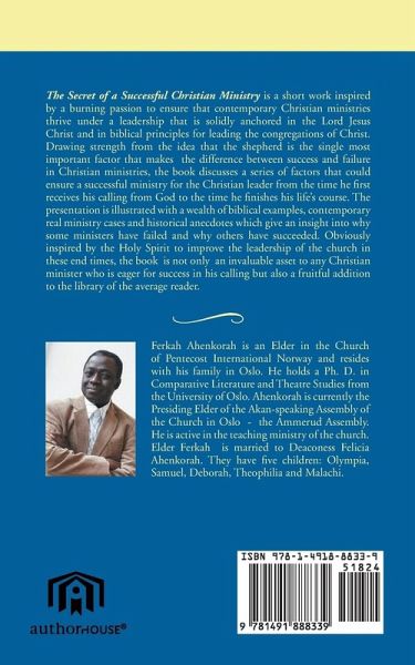 The Secret of a Successful Christian Ministry is a short work inspired by a burning passion to ensure that contemporary Christian ministries thrive under a leadership that is solidly anchored in the Lord Jesus Christ and in biblical principles for leading the congregations of Christ. Drawing strength from the idea that the shepherd is the single most important factor that makes the difference between success and failure in Christian ministries, the book discusses a series of factors that could ensure a successful ministry for the Christian leader from the time he first receives his calling from God to the time he finishes his life's course. The presentation is illustrated with a wealth of biblical examples, contemporary real ministry cases and historical anecdotes which give an insight into why some ministers have failed and why others have succeeded. Obviously inspired by the Holy Spirit to improve the leadership of the church in these end times, the book is not only an invaluable asset to any Christian minister who is eager for success in his calling but also a fruitful addition to the library of the average reader.