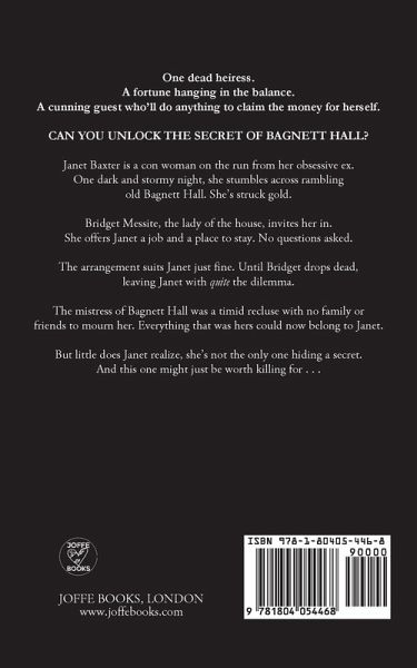 One dead heiress.A fortune hanging in the balance.A cunning guest who'll do anything to claim the money for herself.CAN YOU UNLOCK THE SECRET OF BAGNETT HALL?Janet Baxter is a con woman on the run from her obsessive ex. One dark and stormy night, she stumbles across rambling old Bagnett Hall. She's struck gold.Bridget Messite, the lady of the house, invites her in. She offers Janet a job and a place to stay. No questions asked.The arrangement suits Janet just fine. Until Bridget drops dead, leaving Janet with quite the dilemma.The mistress of Bagnett Hall was a timid recluse with no family or friends to mourn her. Everything that was hers could now belong to Janet.But little does Janet realize, she's not the only one hiding a secret. And this one might just be worth killing for . . .