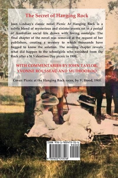 Joan Lindsay's classic novel Picnic At Hanging Rock is a subtle blend of mysterious and sinister events set in a period of Australian social life drawn with loving nostalgia. The final chapter was removed at the request of her publishers, creating a mystery to which thousands have begged to know the solution. The missing chapter reveals what did happen to the schoolgirls who vanished from the Rock after a St Valentines Day picnic in 1900. With commentaries by John Taylor, Yvonne Rousseau and Mudrooroo.