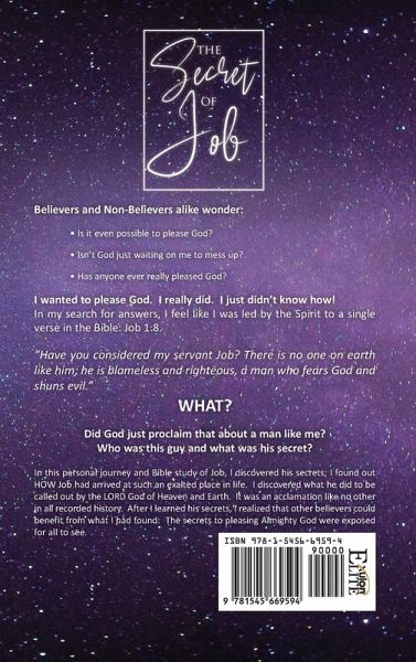 Believers and Non-Believers alike wonder: - Is it even possible to please God? - Isn't God just waiting on me to mess up? - Has anyone ever really pleased God? I wanted to please God. I really did. I just didn't know how! In my search for answers, I feel like I was led by the Spirit to a single verse in the Bible: Job 1:8. "Have you considered my servant Job? There is no one on earth like him; he is blameless and righteous, a man who fears God and shuns evil." WHAT? Did God just proclaim that about a man like me? Who was this guy and what was his secret? In this personal journey and Bible study of Job, I discovered his secrets; I found out HOW Job had arrived at such an exalted place in life. I discovered what he did to be called out by the LORD God of Heaven and Earth. It was an acclamation like no other in all recorded history. After I learned his secrets, I realized that other believers could benefit from what I had found: The secrets to pleasing Almighty God were exposed for all to see.