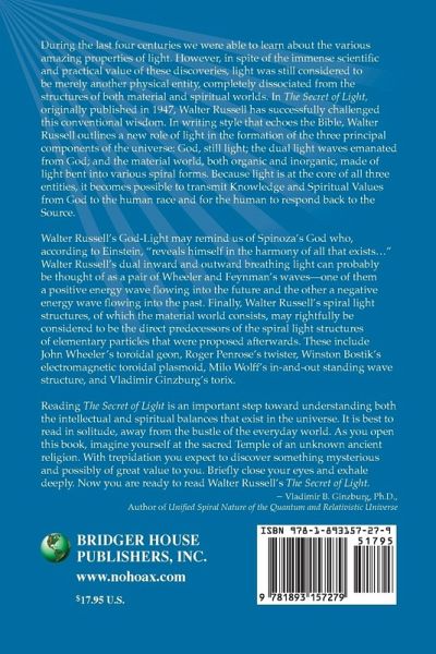 The author challenges the conventional wisdom that light is just another physical entity. He outlines a new role of light in the formation of the three main components of the universe - God, still light; the dual light waves emanated from God and the material world both organic and inorganic which is made of light bent into various spiral forms. Reading this book "is an important step toward understanding both the intellectual and spiritual balances that exist in the universe."