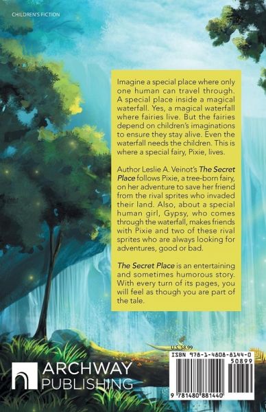 Imagine a special place where only one human can travel through. A special place inside a magical waterfall. Yes, a magical waterfall where fairies live. But the fairies depend on children's imaginations to ensure they stay alive. Even the waterfall needs the children. This is where a special fairy, Pixie, lives. Author Leslie A. Veinot's The Secret Place follows Pixie, a tree-born fairy, on her adventure to save her friend from the rival sprites who invaded their land. Also, about a special human girl, Gypsy, who comes through the waterfall, makes friends with Pixie and two of these rival sprites who are always looking for adventures, good or bad. The Secret Place is an entertaining and sometimes humorous story. With every turn of its pages, you will feel as though you are part of the tale.