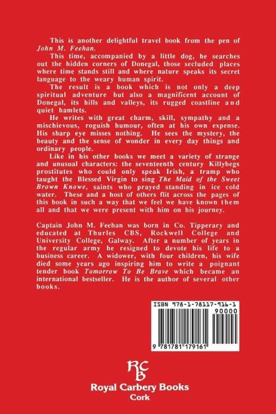 John M Feehan searches out the hidden corners of Donegal, those secluded places where time stands still and where nature speaks its secret language to the human spirit. Although at times controversial, cutting through sham and pretence wherever he meets it, he writes with great charm, skill and sympathy, and with a deep love of the countryside and its people. He sees the mystery, the beauty and the sense of wonder in ordinary things and brings each situation to life so that the reader feels almost physically present. This is a most delightful travel book of memorable beauty that can be read again and again.