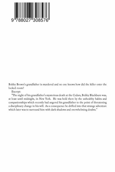 Bobby Brown's grandfather is murdered and no one knows how did the killer enter the locked room? Excerpt: "The night of his grandfather's mysterious death at the Cedars, Bobby Blackburn was, at least until midnight, in New York. He was held there by the unhealthy habits and companionships which recently had angered his grandfather to the point of threatening a disciplinary change in his will. As a consequence he drifted into that strange adventure which later was to surround him with dark shadows and overwhelming doubts."