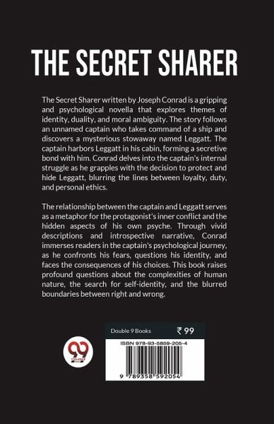 The Secret Sharer written by Joseph Conrad is a gripping and psychological novella that explores themes of identity, duality, and moral ambiguity. The story follows an unnamed captain who takes command of a ship and discovers a mysterious stowaway named Leggatt. The captain harbors Leggatt in his cabin, forming a secretive bond with him. Conrad delves into the captain's internal struggle as he grapples with the decision to protect and hide Leggatt, blurring the lines between loyalty, duty, and personal ethics. The relationship between the captain and Leggatt serves as a metaphor for the protagonist's inner conflict and the hidden aspects of his own psyche. Through vivid descriptions and introspective narrative, Conrad immerses readers in the captain's psychological journey, as he confronts his fears, questions his identity, and faces the consequences of his choices. This book raises profound questions about the complexities of human nature, the search for self-identity, and the blurred boundaries between right and wrong.