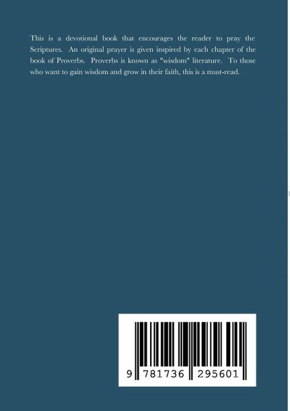 This is a devotional book that encourages the reader to pray the Scriptures. An original prayer is given inspired by each chapter in the Old Testament book of Proverbs. Proverbs is known as "wisdom" literature. To those who want to gain wisdom and grow in their faith, this is a must-read.