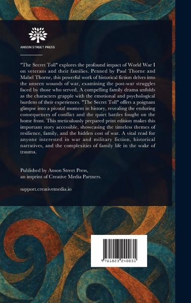 "The Secret Toll" explores the profound impact of World War I on veterans and their families. Penned by Paul Thorne and Mabel Thorne, this powerful work of historical fiction delves into the unseen wounds of war, examining the post-war struggles faced by those who served. A compelling family drama unfolds as the characters grapple with the emotional and psychological burdens of their experiences. "The Secret Toll" offers a poignant glimpse into a pivotal moment in history, revealing the enduring consequences of conflict and the quiet battles fought on the home front. This meticulously prepared print edition makes this important story accessible, showcasing the timeless themes of resilience, family, and the hidden cost of war. A vital read for anyone interested in war and military fiction, historical narratives, and the complexities of family life in the wake of trauma. This work has been selected by scholars as being culturally important, and is part of the knowledge base of civilization as we know it. This work is in the public domain in the United States of America, and possibly other nations. Within the United States, you may freely copy and distribute this work, as no entity (individual or corporate) has a copyright on the body of the work. Scholars believe, and we concur, that this work is important enough to be preserved, reproduced, and made generally available to the public. We appreciate your support of the preservation process, and thank you for being an important part of keeping this knowledge alive and relevant.