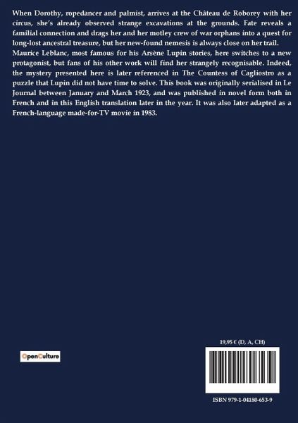 When Dorothy, ropedancer and palmist, arrives at the Château de Roborey with her circus, she¿s already observed strange excavations at the grounds. Fate reveals a familial connection and drags her and her motley crew of war orphans into a quest for long-lost ancestral treasure, but her new-found nemesis is always close on her trail. Maurice Leblanc, most famous for his Arsène Lupin stories, here switches to a new protagonist, but fans of his other work will find her strangely recognisable. Indeed, the mystery presented here is later referenced in The Countess of Cagliostro as a puzzle that Lupin did not have time to solve. This book was originally serialised in Le Journal between January and March 1923, and was published in novel form both in French and in this English translation later in the year. It was also later adapted as a French-language made-for-TV movie in 1983.
