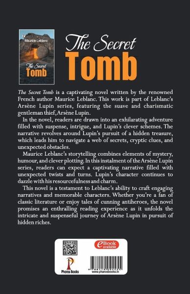 "The Secret Tomb" is a captivating novel written by the renowned French author Maurice Leblanc. This work is part of Leblanc's Arsène Lupin series, featuring the suave and charismatic gentleman thief, Arsène Lupin. In the novel, readers are drawn into an exhilarating adventure filled with suspense, intrigue, and Lupin's clever schemes. The narrative revolves around Lupin's pursuit of a hidden treasure, which leads him to navigate a web of secrets, cryptic clues, and unexpected obstacles. Maurice Leblanc's storytelling combines elements of mystery, humour, and clever plotting. In this instalment of the Arsène Lupin series, readers can expect a captivating narrative filled with unexpected twists and turns. Lupin's character continues to dazzle with his resourcefulness and charm. This novel is a testament to Leblanc's ability to craft engaging narratives and memorable characters. Whether you're a fan of classic literature or enjoy tales of cunning antiheroes, the novel promises an enthralling reading experience as it unfolds the intricate and suspenseful journey of Arsène Lupin in pursuit of hidden riches.