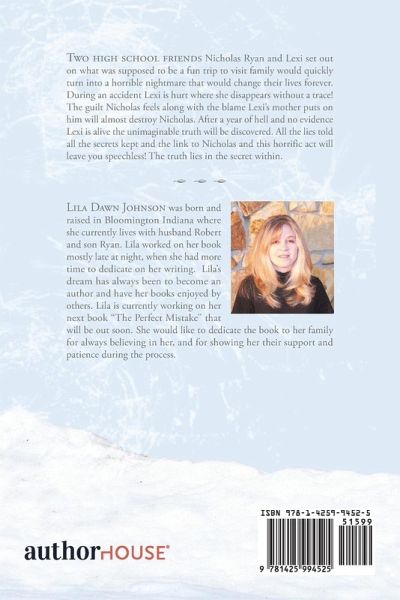 Two high school friends Nicholas Ryan and Lexi set out on what was supposed to be a fun trip to visit family would quickly turn into a horrible nightmare that would change their lives forever. During an accident Lexi is hurt where she disappears without a trace! The guilt Nicholas feels along with the blame Lexi's mother puts on him will almost destroy Nicholas. After a year of hell and no evidence Lexi is alive the unimaginable truth will be discovered. All the lies told all the secrets kept and the link to Nicholas and this horrific act will leave you speechless! The truth lies in the secret within.