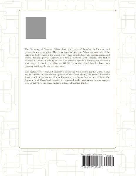 The Secretary of Veterans Affairs deals with issues related to veterans who have served in the military. The Secretary of Homeland Security is concerned with the safety of the country and its citizens, especially with attacks by terrorists.